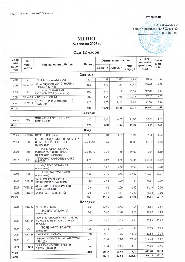 Заведующий - Козловская Ольга Викторовна 27 Август 2024 14:44График приема пищи обучающимися (смотреть)